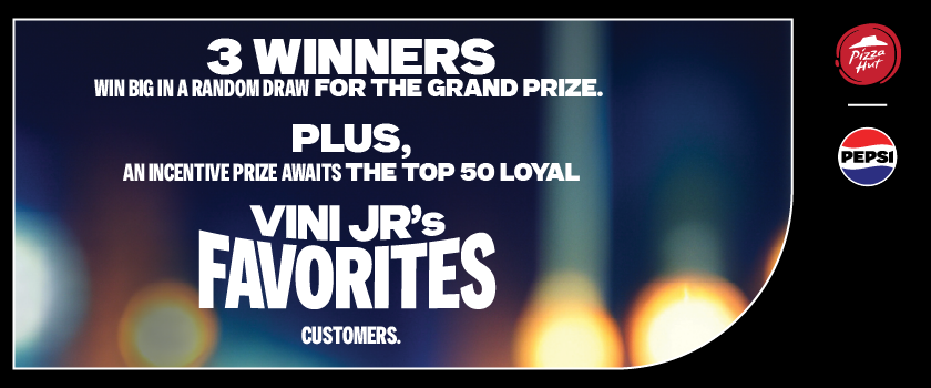 Only purchases of the Vini Jr. Bundle made through the Pizza Hut App during the Purchase Period qualify for entry into the Promotion. Complimentary meals, coupons, staff discounts, or any other form of free or substituted purchase are not eligible for entry.